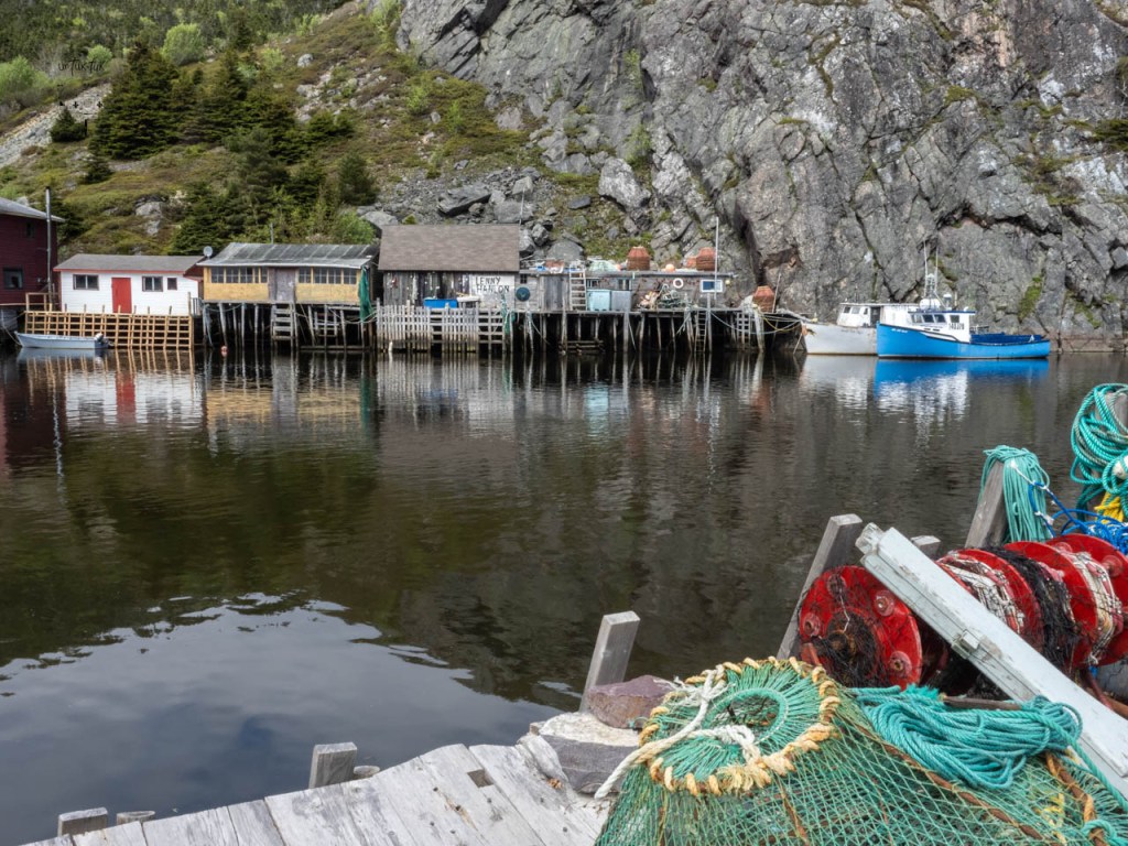 Quant à Quidi Vidi, nous nourrissions peut-être des espérances démesurées par rapport à ce petit village peuplé d’artistes. Une visite du seul centre d’art (une douzaine de boutiques d’artisans) où Dominique a pu échanger avec une charmante dame à propos du tissage sur métier traditionnel. Elle s’en est d’ailleurs fait une nouvelle amie FB. Elle s’appelle Angora et si vous voulez voir son travail, rendez vous sur sa page FB @angoraborealihomespundNL ou encore sur son Instagram angoraborealisnl. Une marche dans les rues du village et des photos des diverses maisons colorées construites sur pilotis dans la baie nous ont satisfaits. C’est très joli, mais à vrai dire il n’y a pas grand-chose à y faire, sauf peut-être aller déguster une « Iceberg » à la brasserie qui fabrique cette bière, supposément faite avec de l’eau de glaciers. Les petites maisons sont pour la plupart abandonnées. Les artistes sont tous rassemblés dans une belle bâtisse neuve, ce qui enlève probablement beaucoup de charme à la visite de ces artisans.