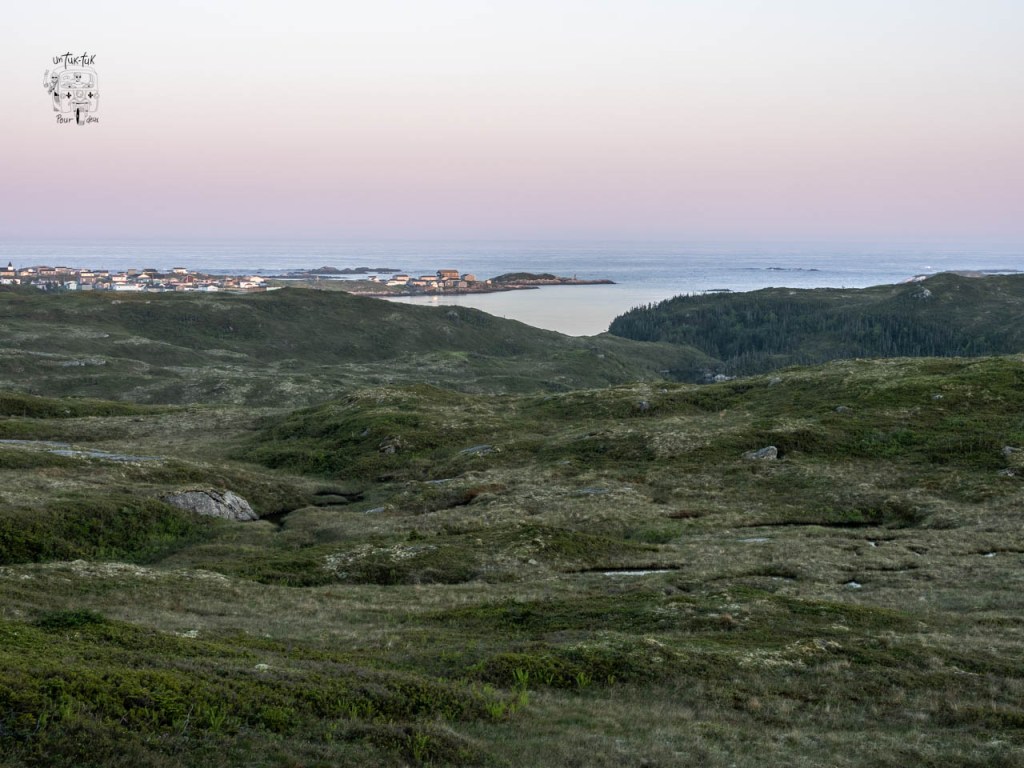 Le lendemain, nous continuons notre périple vers Twillingate chérie (350 km vers le nord-ouest) et parvenons au bivouac préféré de notre séjour, le Crow Head près du phare. Il ne fait pas beau pour le moment, mais nous savons que nous attend une belle journée demain. Pour la suite, devinez… encore de la pluie. Mouin ! Grande réflexion… Notre bateau de retour est planifié pour le 18 juin. Est-ce qu’on reste ici sept jours de plus sous la mouillasse? Depuis le temps que nous voyageons, il ne nous est arrivé qu’une seule fois de devancer notre retour et c’était au Népal — nous avions prévu deux mois pour visiter un pays d’à peine 300 km de large. — Aussi, nous avons aboli depuis belle lurette l’expression « j’aurais donc dû » puisque les regrets sont toujours inutiles et que les décisions se prennent en fonction du moment. Et puis voilà, merde pour la température, aucun contrôle de ce côté. L’intérêt de Terre-Neuve, ce sont ses paysages et ses randonnées et il faut qu’il fasse beau. C’est décidé, nous appelons Marine Atlantique et devançons notre retour du 18 au 14 juin.