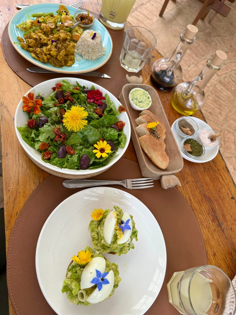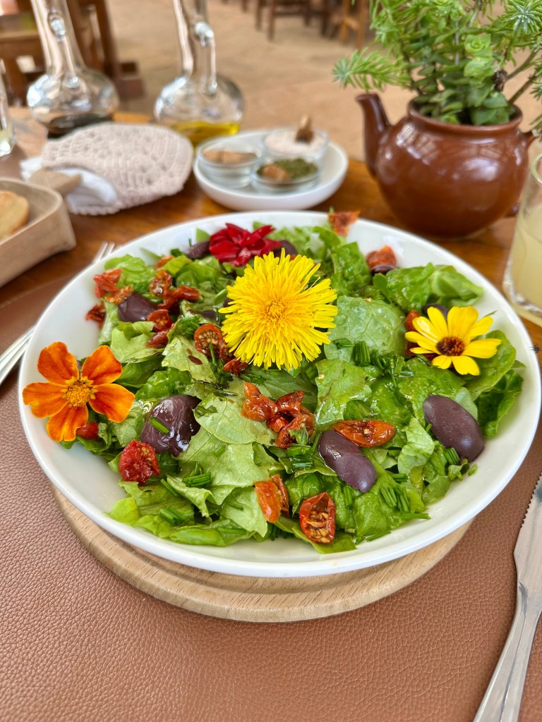 Pour nous remonter de cette journée quelque peu décevante, nous allons luncher à la Finca La Vispéra. Il s’agit d’un restaurant dans la montagne avec d’immenses jardins de fleurs et de plantes toutes bio et comestibles. Les assiettes sont aussi magnifiques que succulentes et oui, bien sûr on y mange des fleurs ! Un très beau resto à recommander tant pour sa savoureuse et raffinée cuisine bio, que pour son site. C’est agréable de faire le tour du parterre.