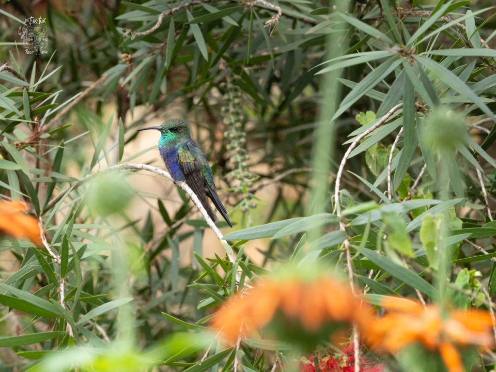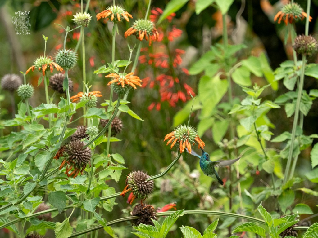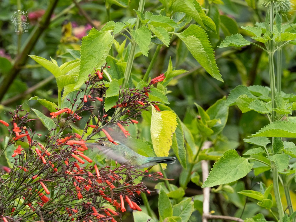 Entretemps, le soleil fait une percée, nous tentons à nouveau une visite au refuge de colibri. Youpi !
