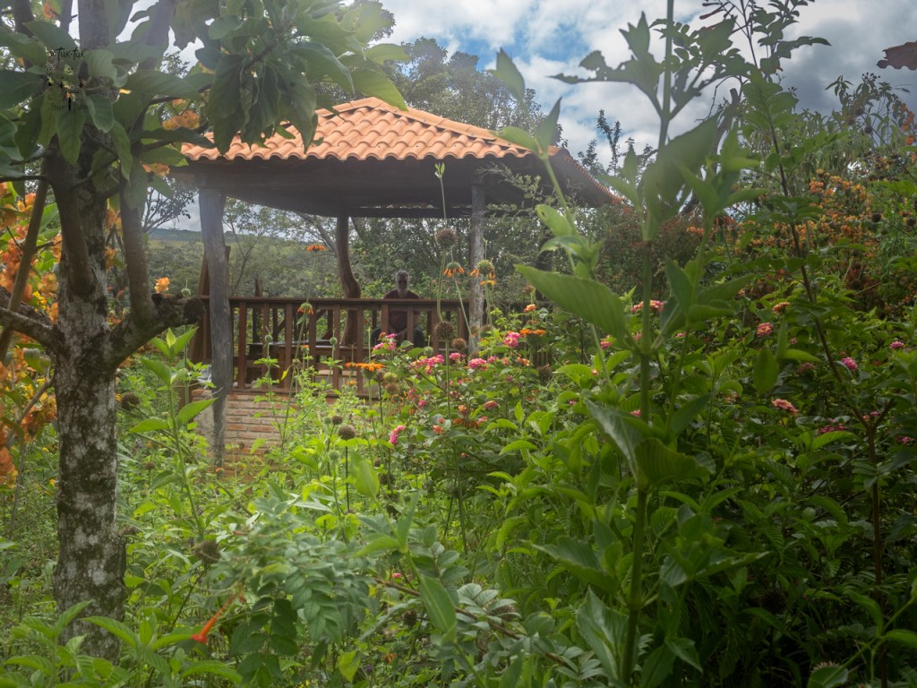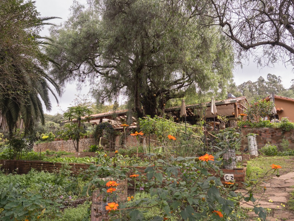 L’endroit nous enchante. Il compte une vaste pièce commune haute de plafond et bien éclairée où se tiendront les petits-déjeuners et où l’on pourra se cuisiner des plats ainsi qu’un beau salon. On s’y sent immédiatement bien. Le terrain, d’une superficie de 2 ha (20 000 mètres carrés), est complètement boisé et aménagé. Des fleurs, des arbustes, des arbres fruitiers, des légumes, des sentiers en pavé et un petit lac avec sa cabaña privée sont partout.