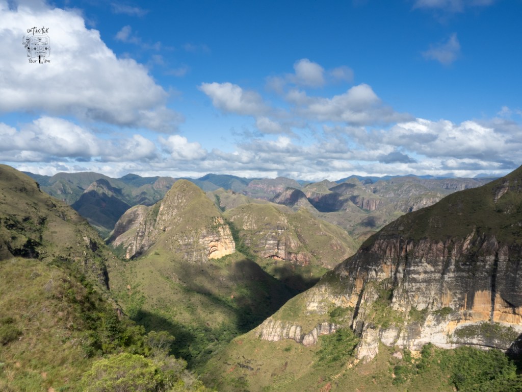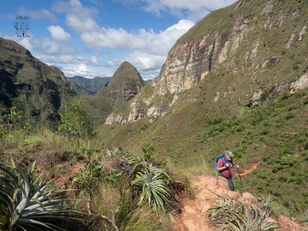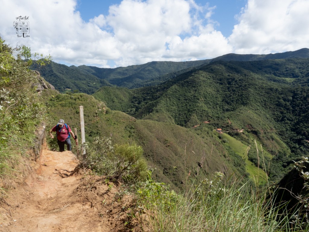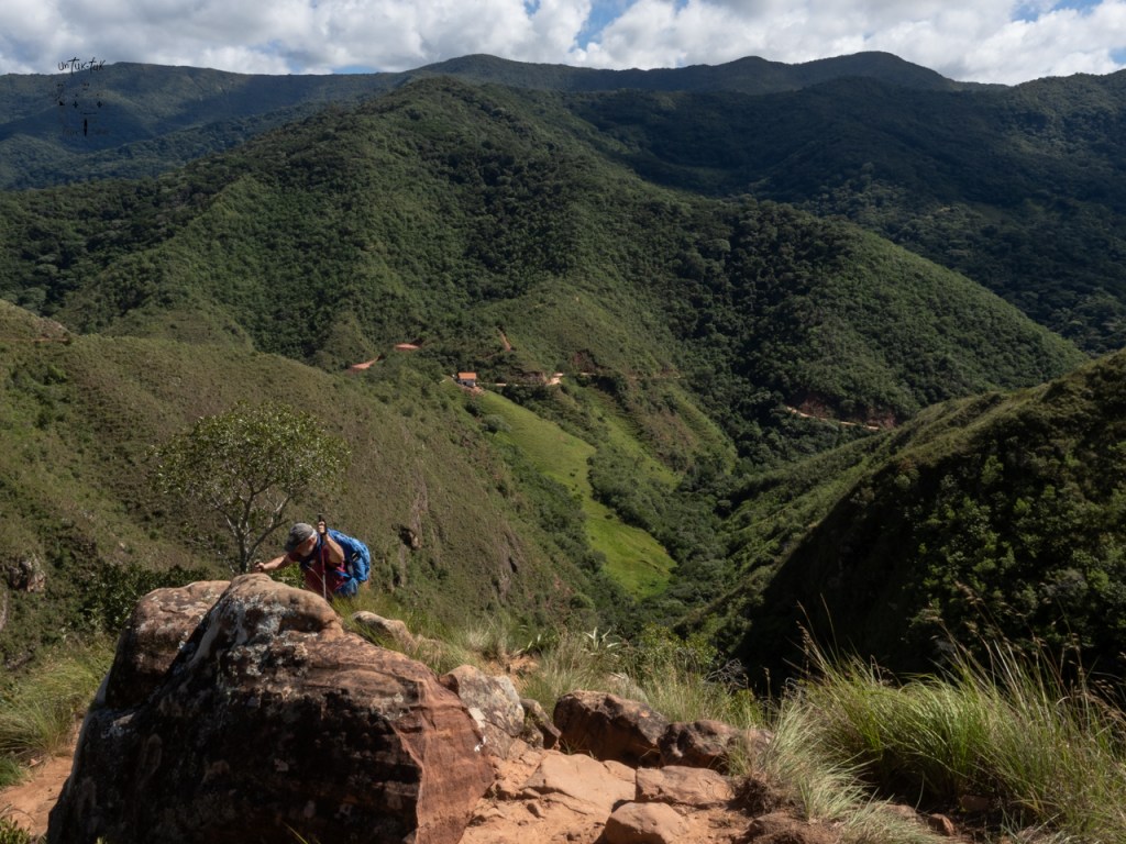 Jeudi, c’est notre ultime journée à Samaipata et il fait plein beau soleil. Deux choses au programme. Retour aux colibris pour profiter d’une meilleure lumière pour les photos et randonnée dans le sentier El condo de los Andes également dans le parc national Amboró. Et là, c’est l’apothéose. On nous disait que ça prenait absolument un guide. Pfff ! On a trouvé grâce à maps.me le point de départ et le sentier. Quel magnifique sentier d’ailleurs ! Un des plus beaux que nous ayons marché à ce jour. Il part de Palermo situé à 45 minutes de Samaipata. Ce n’est pas le kilométrage qui justifie le 45 minutes, mais plutôt la route en terre pour s’y rendre qui monte et qui est traversée par trois ruisseaux. Heureusement, on dirait qu’il n’a pas plu depuis plusieurs jours dans ce coin, car le chemin est bien sec. Donc, ça se fait relativement facilement.