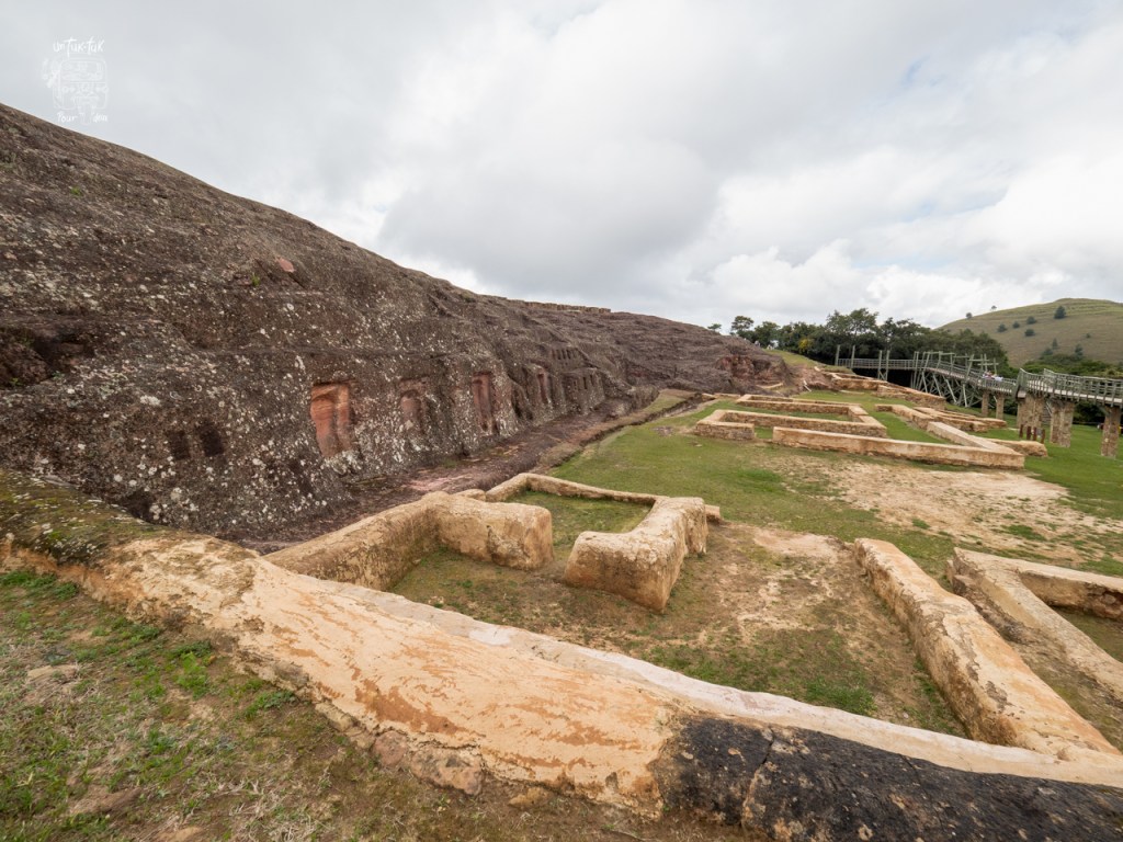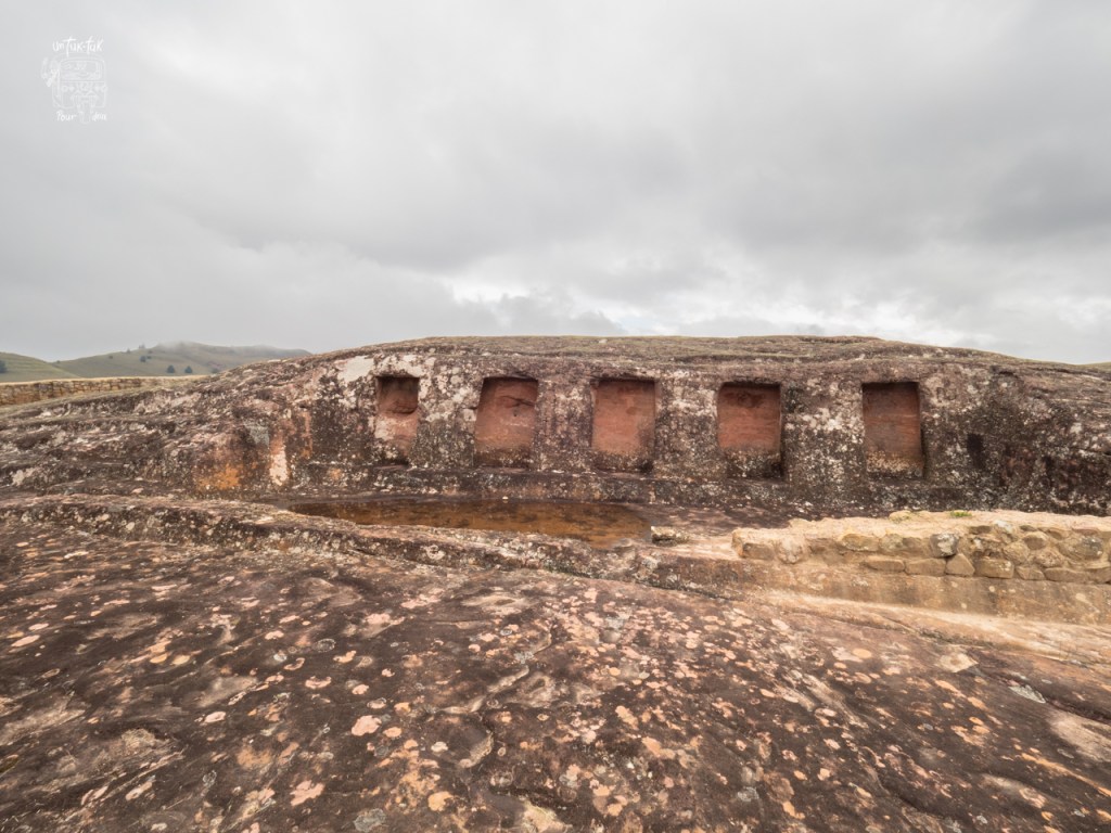 Donc, ce dimanche, avec le cœur léger, nous nous rendons d’abord au Museo Archeológico en prélude à notre seconde étape, les ruines préhispaniques El Fuerte situées à environ une vingtaine de minutes de route. Le musée est tout simple et met la table pour la visite sur le site. Nous partons ensuite pour le fameux El Fuerte inscrit au patrimoine mondial de l’UNESCO. Il est reconnu particulièrement pour son immense rocher aménagé de bassins et de canaux creusés à même la roche avec des niches latérales et des figures de félins. Il est gigantesque et plusieurs bas murs et vestiges y sont très bien conservés. Deux tours d’observation facilitent la visite.