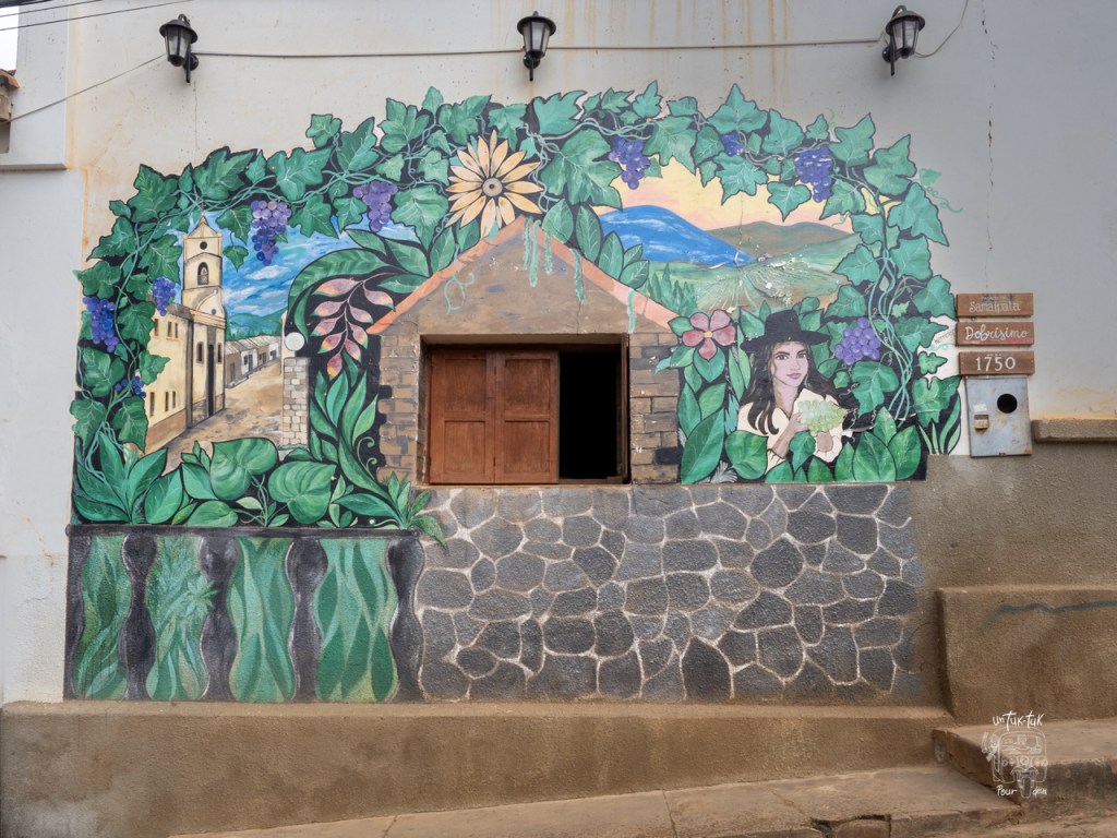 La zone urbaine plus ancienne est située dans le fond de la vallée tandis que le développement des dix dernières années, nouvelles et grosses maisons, auberges, restaurants et secteurs vinicoles prend place dans les montagnes autour de la ville. L’infrastructure routière, l’éclairage et le système d’aqueduc et d’égout n’ont cependant pas suivi le rythme. Les rues sont boueuses et pleines de trous et on n’y rencontre pas toujours. L’artère principale qui sort du centre traverse même une rivière à gué avec un petit pont pour les piétons. Qu’à cela ne tienne, notre Casa Samai Boutique est une belle maison de six chambres située à environ un kilomètre du centre, soit une dizaine ou une quinzaine de minutes à pied selon si tu descends en ville ou si tu remontes à la casa. C’est l’établissement d’hôtes le mieux coté de l’endroit et elle le mérite. Nous sommes accueillis par Irma, une jeune femme qui, avec Marcello, son compagnon de vie, s’occupent de la gestion quotidienne de la maison ainsi que de la préparation des petits-déjeuners. Les proprios, deux États-Uniens, qui ont longtemps travaillé dans des organismes humanitaires internationaux, se sont installés ici il y a une douzaine d’années. Ils n’ont pris la décision de la transformer en gite il n’y a que de deux ans seulement.