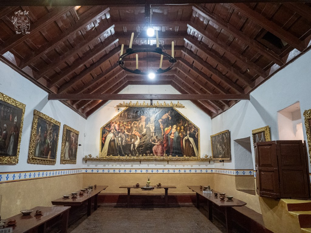 Cette même journée, nous avons visité le Museo y Convento de Santa Teresa et eu l’immense avantage d’avoir une guide qui parlait français. Le couvent construit vers 1685 accueillait des carmélites recluses. En fait, l’aristocratie lui « donnait » sa première fille, lorsqu’elle atteignait ses 15 ans, ainsi qu’une dot qui servait non pas à la fille, mais à la communauté. Le couvent accueille encore quelques carmélites dans une nouvelle section alors que l’ancienne section, celle que nous pouvons visiter est maintenant restaurée en musée. Notre guide avait une connaissance particulièrement étoffée du sujet, ce qui a rendu notre visite très intéressante.