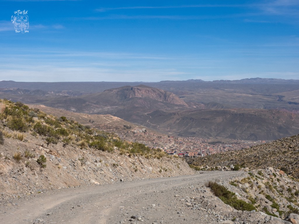 À peine 155 km nous distancient de Sucre et Potosí, mais il faut quand même près de trois heures pour la parcourir. La route, toujours dans le même genre, c.-à-d. courbes, descentes, montées, virages serrés, camions polluants qui roulent à 20 km/h, est en montagne et les vues éblouissent plus les unes que les autres. Elles entraînent des arrêts-photos fréquents, quoique pas aussi nombreux que le voudrait bien la photographe. Comprendre que les haltes pour admirer le panorama ne font pas partie des priorités du gouvernement bolivien.