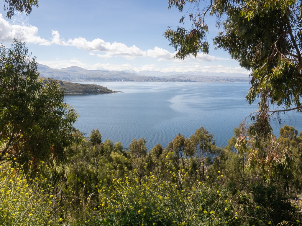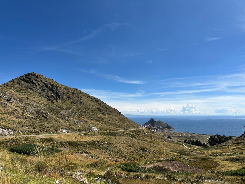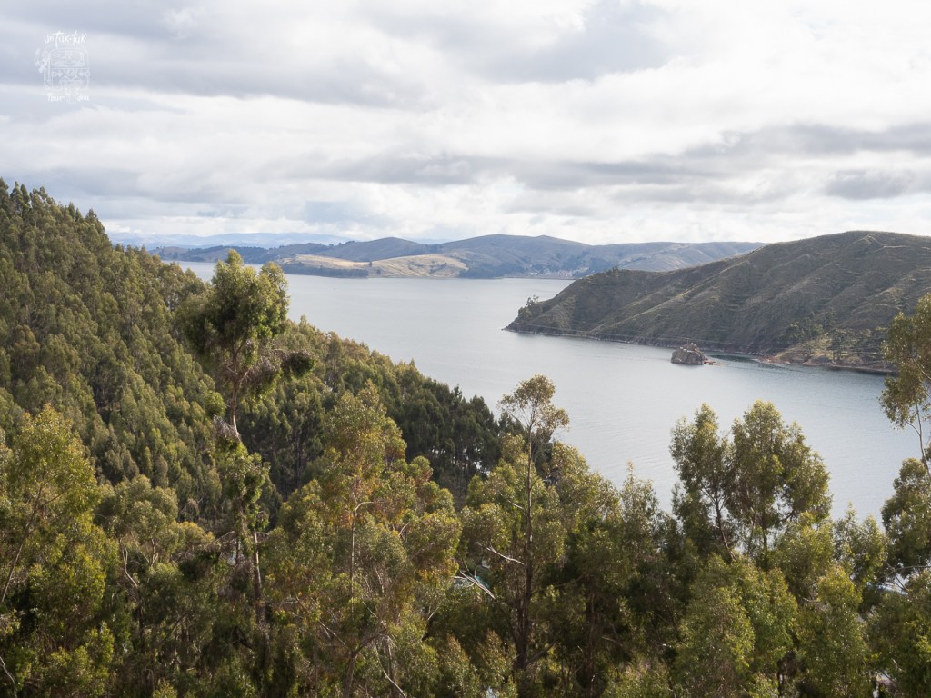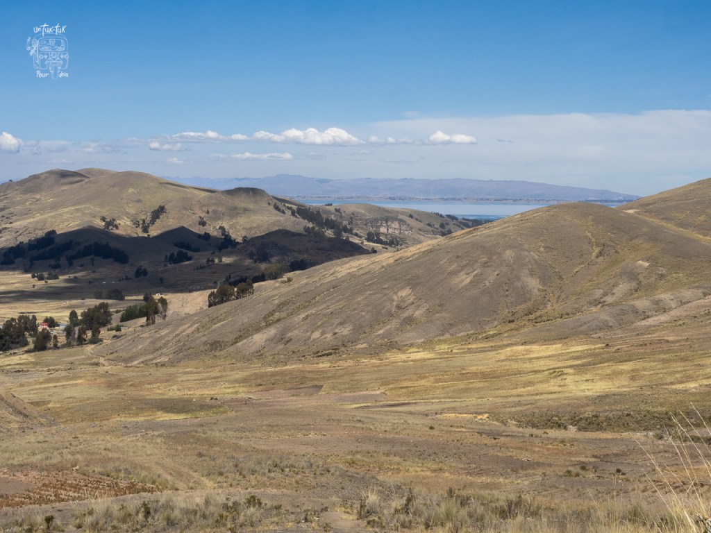 Après trois heures de route — 140 km —, le fameux lac Titicaca et ses rives apparaissent au loin. Immense, il mesure environ 190 km de longueur par 80 km de largeur dont grosso modo 44 % de la superficie se situe en Bolivie et le reste au Pérou. Aussi, c’est le lac navigable le plus élevé au monde avec ses 3812 m d’altitude et le plus grand lac d’eau douce d’Amérique du Sud. Mais surtout, selon une légende, Manco Capac, le présumé fondateur de la dynastie inca, serait issu du lac Titicaca, notamment de la Isla del Sol, avant d’aller s’installer à Cuzco au Pérou.