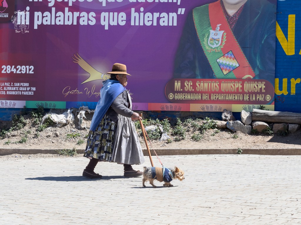 Le lendemain, dernière journée à Copacabana, il nous faut deux choses : a) Trouver de la gazolina et b) décider de notre prochaine étape. Pour le premier point, nous demandons à l’accueil de l’hôtel et on nous propose d’abord les deux stations d’essence officielles, lesquelles, nous le savons, auront des fils d’attente de plus de 24 h. Après insistance, on nous indique les spots de marché noir. Ouf! JP ira plus tard faire le plein (30 litres pour 300 bolivianos/60 $ CAN).