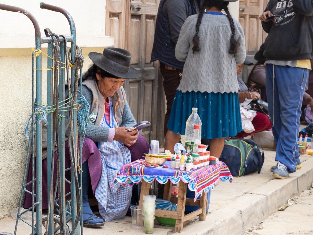 27 mai, départ vers Samaipata que nous avions aussi beaucoup aimé. Un sept heures de plus de route et retour à l’auberge « la Casa Samai ». Le lendemain, il faut aller chercher de l’argent à Mairana (une quinzaine de km de Samaipata) et faire les boutiques pour dénicher des souvenirs. Évidemment, nous retournons également manger au restaurant-jardin « Finca la Vispéra » et bien sûr, la quête de la gazolina se poursuit, nous cherchons des vendeurs itinérants. Niet, plus rien à vendre! Mais on nous dit de revenir demain. Donc, première chose à faire le jour suivant, trouver de l’essence et JP, tout candidement, se pointe la face à la seule station-service de la ville. Les vendeurs au noir (une dizaine au moins) sont tous installés en file sur le trottoir afin de faire remplir leurs bidons. Il y a environ 4-5 voitures en attente et la pompiste fait le plein en alternance d’une voiture — deux bidons — d’une voiture — deux bidons, etc. Trente minutes d’attente et le tour est joué. On s’en tire plus que bien !
